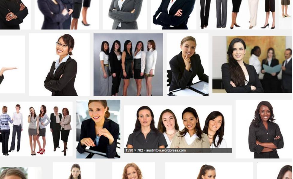 Getting a professional presence together is not a simple thing. In the last 24 hours, I have created this website, a new Facebook page, a new twitter account and at least 3 headaches. I then linked all of these things to my business site, twitter and LinkedIn. Creating all of these things is not the hard part. The hard part is dressing them up appropriately and professionally. But what counts as “professional” these days? In my mind, it comes to me wearing a classy outfit with heels carrying a sleek computer/tablet bag and cruising the streets of some metropolitan area. And conveniently, Google search does not disappoint. Try “professional women” and you get almost everyone looking like this…